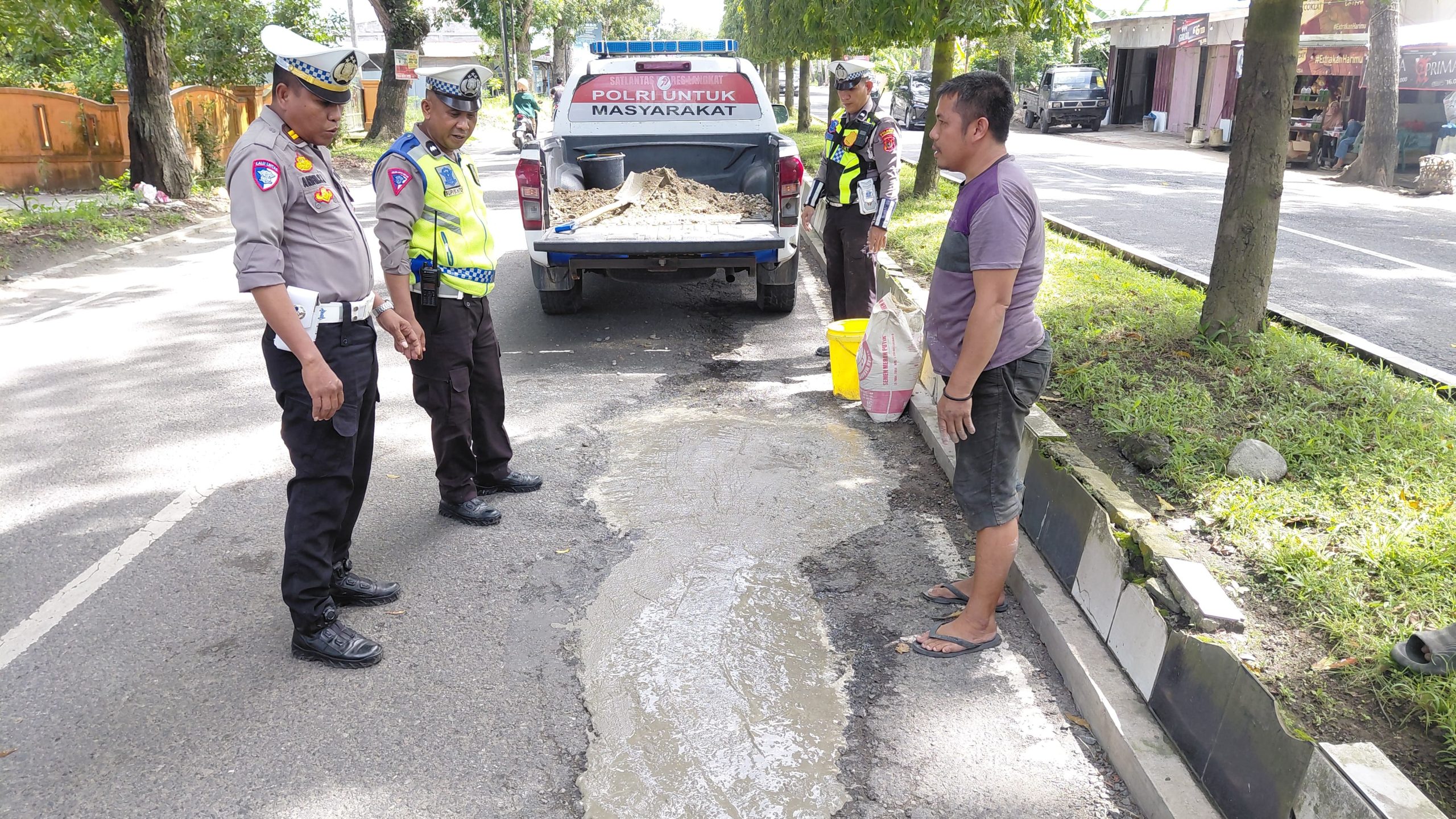 “Upaya penambalan jalan ini kami lakukan sebagai bentuk pelayanan kepada masyarakat, demi keselamatan berlalu lintas para pengguna jalan,” ujar AKP Tommy.