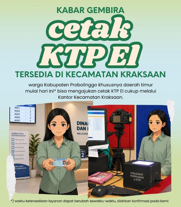 “Layanan cetak KTP-el di Kecamatan Kraksaan akan resmi dibuka pada Senin, 27 April 2026. Kami berharap masyarakat wilayah timur dapat memanfaatkan fasilitas ini sehingga tidak perlu jauh-jauh lagi,” ujar Rofiah saat dikonfirmasi, Jumat (24/4).