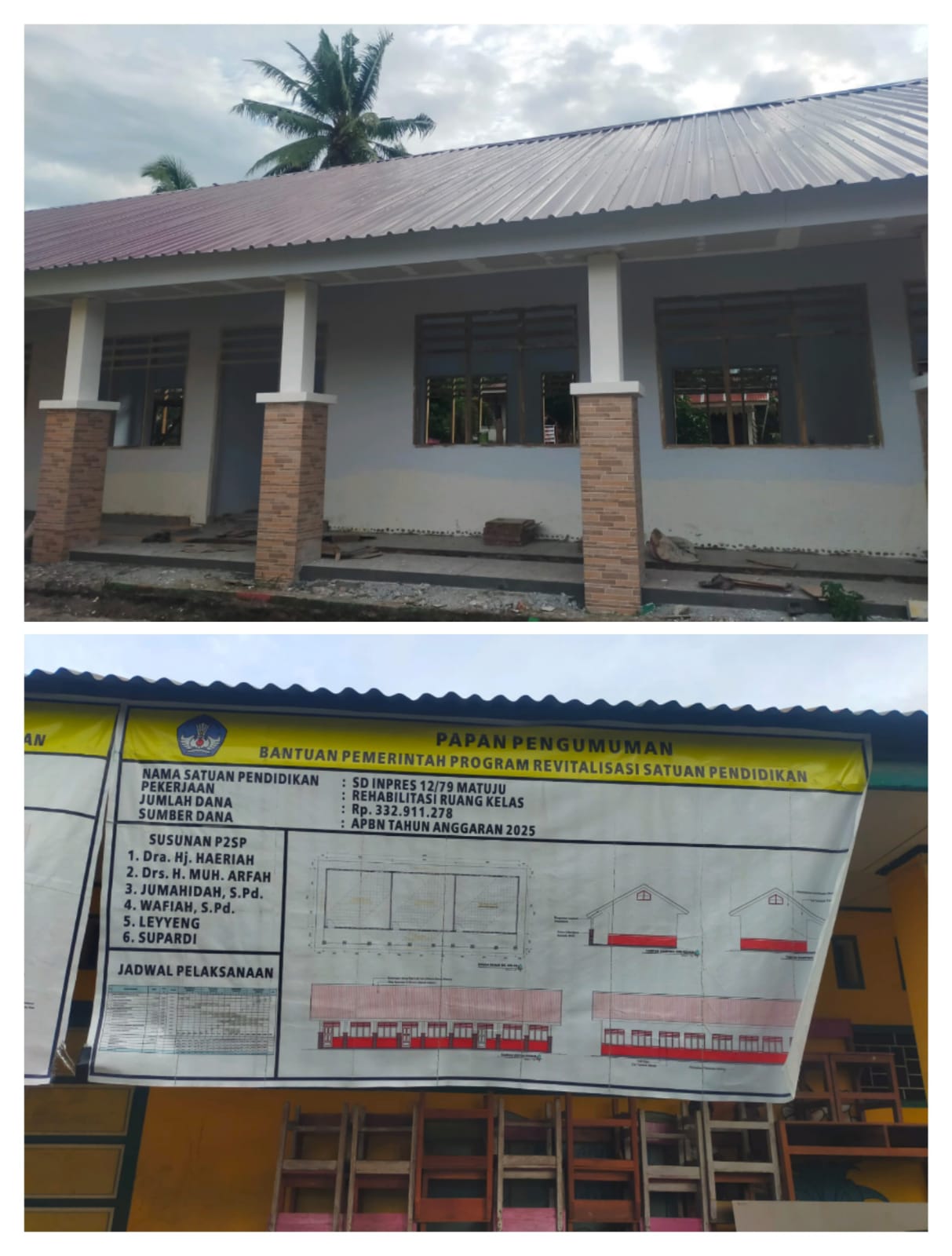 Satu ruang kelas yang hanya untuk pekerjaan rangka dan mengganti seng dengan anggaran Rp 332.911.278.000