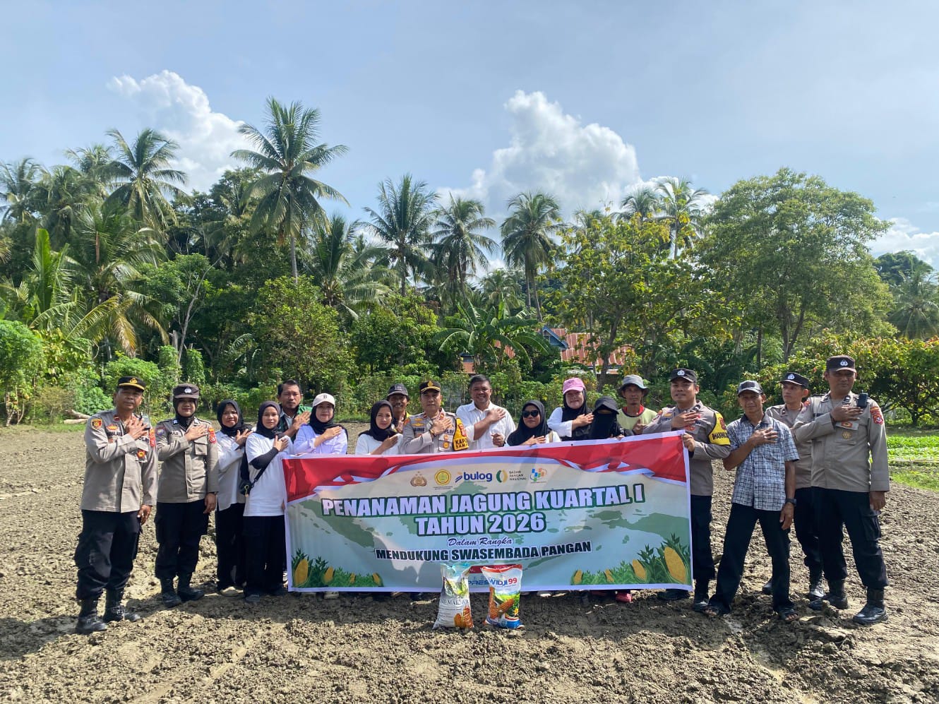 KOLAKA, Reportase INC – Polsek Samaturu, Kolaka dalam upaya mendukung Program Ketahanan Pangan Nasional, melaksanakan penanaman jagung serentak kuartal I tahun 2026 di lahan binaan ketahanan pangan, Desa Kaloloa, Kecamatan Samaturu, Kabupaten Kolaka, Rabu (18/2/2026).