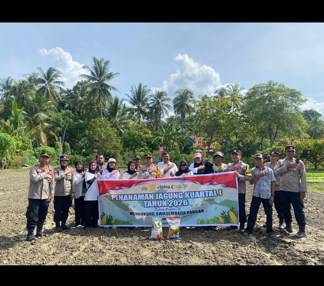 KOLAKA, Reportase INC – Polsek Samaturu, Kolaka dalam upaya mendukung Program Ketahanan Pangan Nasional, melaksanakan penanaman jagung serentak kuartal I tahun 2026 di lahan binaan ketahanan pangan, Desa Kaloloa, Kecamatan Samaturu, Kabupaten Kolaka, Rabu (18/2/2026).